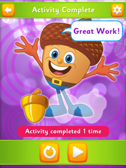 Eggy Numbers includes seven fun numeracy games including Dot-to-Dot, Copy the Number, Draw the Number, Number or Not, Count with Buddy, Number Ring, and Number Dominoes. There are also 138 golden acorns and 18 critters for children to earn by completing activities.
